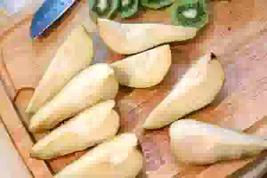 3. Груши чистить не надо, достаточно порезать их на четвертинки и удалить семенную коробочку.