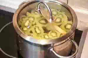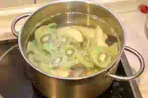 5. Дать воде повторно закипеть, уменьшить огонь до минимума и варить примерно 15 минут под крышкой. Готовый компот их киви с грушами снять с плиты, дать настояться под крышкой. Можно разливать горячим или полностью охладить.