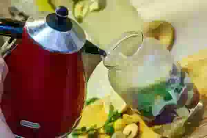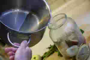 4. Воду вскипятить и залить банку до самого верха. Прикрыть банку крышкой и оставить, пока вода немного не остынет.