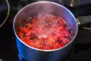 5. Прикрыть кастрюлю крышкой и довести компот до кипения на небольшом огне.