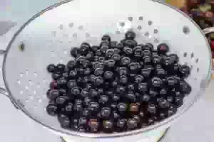 1. Банки вымыть с содой, хорошо промыть, а затем простерилизовать. Крышки залить кипятком. Ягоды черной смородины перебрать, отделить от веточек, удалить мусор. Промыть смородину под холодной проточной водой и откинуть на дуршлаг, чтобы удалить лишнюю влагу.