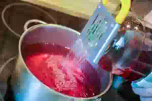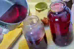 6. Слить отвар из банок с ягодами в кастрюлю,