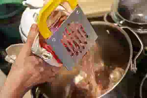 4. Спустя указанное время, слить отвар из банок в кастрюлю подходящего объема.