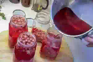 6. Разлить сироп из ягодного отвара с сахаром по банкам. Сироп должен чуть-чуть переливаться из банок.
