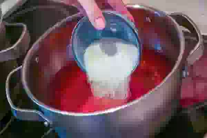 6. добавить сахар, довести отвар до кипения и уменьшить огонь до минимального. Кипятить сироп 2-3 минуты после чего выключить огонь.
