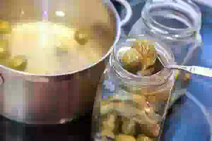 6. Разложить фейхоа по банкам, залить сиропом и герметично закрыть крышками. Перевернуть банки с компотом вверх дном, прикрыть пледом и оставить в таком положении медленно остывать. Готовый компот с фейхоа хранить в прохладном месте.