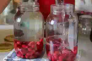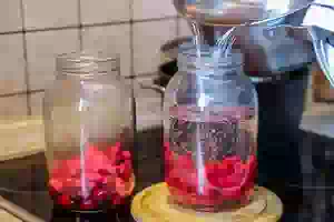 3. Залить ягоды в банках кипятком по самое горлышко и оставить на 15-20 минут настояться.