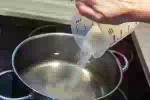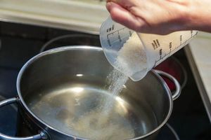 7. добавить сахар и довести до кипения. Снизить нагрев до минимального и держать на плите 5 минут, чтобы кристаллы сахара полностью растворились.