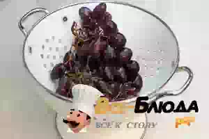 1. Промыть под проточной водой виноград, откинуть на дуршлаг, чтоб убрать излишек влаги. Виноградины отделить от веточек.