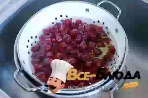 1. Малину перебрать, удалить плодоножки и чашелистики, выбросить подпорченные ягоды. Сложить перебранную малину в дуршлаг и опустить в холодную воду. Дать воде стечь с ягод.