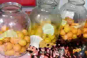 3. Простерилизовать трехлитровые банки на пару. Крышку для закрутки нужно прокипятить. Наполнить стерильную банку абрикосами примерно наполовину. В каждую банку положить две дольки лимона.