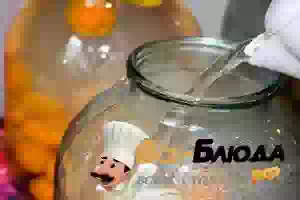 4. Вскипятить воду. Залить кипятком абрикосы в банке. Прикрыть подготовленной крышкой. Оставить на 10-15 минут. Ошпаренные абрикосы отдадут свой аромат воде, поэтому эту жидкость нужно использовать для сиропа.