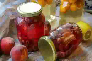 Компот из малины с персиками на зиму Ингредиенты: на 3х-литровую банку компота: лимонная кислота (порошок) - 1/4 ч.л. вода - около 2.5 л персики - 1 кг