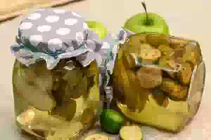 Компот из фейхоа с яблоками Ингредиенты: яблоки (зеленые, кислые) - 500г сахар - 300-400г фейхоа - 500г вода - 3 л.
