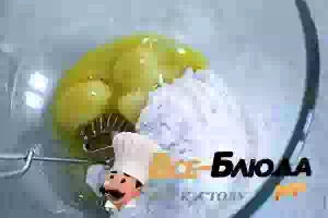 2. Растирать желток с сахаром удобнее венчиком, но можно и миксером.