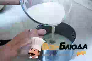 2. В молоко добавить сахар, ароматизировать ванильной эссенцией и довести до кипения. Тонкой струйкой влить половину горячего молока в желтки, непрерывно размешивая, чтобы желтки не свернулись. Затем перелить желтки с молоком обратно в кастрюлю с оставшейся половиной молока. Поставить кастрюлю с молочно-яичной смесью на небольшой огонь или водяную баню и варить, непрерывно помешивая, пока смесь не загустеет.