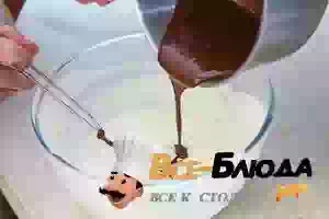 6. Смешать растопленный шоколад с охлажденным английским кремом, размешать до однородности, а затем аккуратно примешать взбитые сливки. Получившуюся массу перелить в мороженицу и оставить на 40-50 минут.