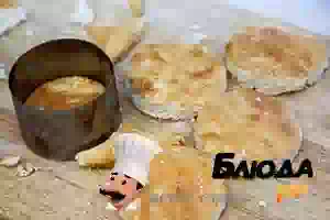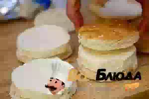 1. Бисквит можно купить готовый или заранее испечь по любому понравившемуся рецепту. На фото бисквит из белков. Если бисквит высокий, то сначала разрезать его на 2 тонких пласта. Из каждого пласта формочкой вырезать кружочки или квадратики. Это будет основой десерта.