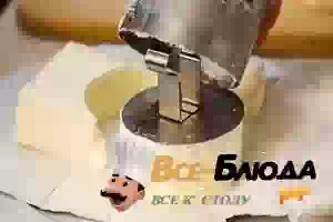 2. Из бруска мороженого вырезать кусочки той же формы, что и бисквитная основа. Мороженое должно быть толщиной около 2 см.