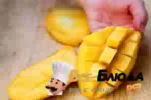 4. Манго разрезать вдоль косточки на 2 части. Срезать ароматную сочную мякоть