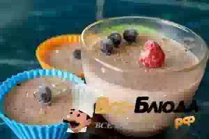 5. Полученную массу разливаем по формочкам, ставим в холодильник до полного застывания шоколадного желе. Украшаем десерт ягодами и подаем на стол.