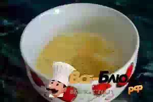 1. В глубокую миску наливаем воду, засыпаем желатин. Делаем все по инструкции, на упаковке с желатином. Убираем емкость в сторону на 25 минут.