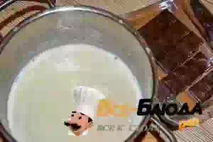 3. Поломайте шоколад на кусочки и киньте их в молочную смесь.