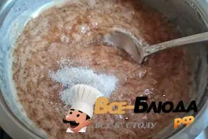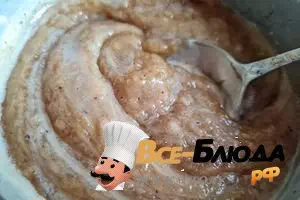 3. Засыпать в ковш с ореховой массой порошковый желатин, тщательно размешать.