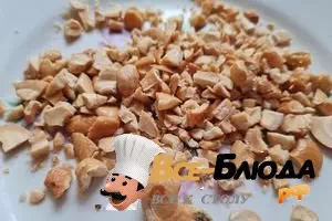 8. Украсить готовую пана котту рублеными орехами. Десерт из ореховой пасты с клубникой готов к подаче.
