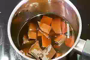 1. Осторожно растопить шоколад с ромом и кофе на слабом огне, постоянно помешивая.