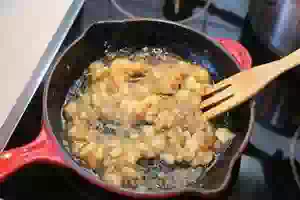 4. Продолжать жарить бананы в сахаре, пока они не превратятся во вкусно пахнущее карамелью месиво. Бананы станут очень мягкими у чуть закарамелизуются.