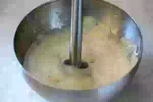 6. Пробить бананы в карамели со сливками погружным блендером. Должна получится однородная густая масса.