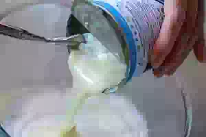 3. и немного поработать миксером на небольшой скорости, чтобы сгущенка равномерно распределилась.