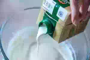4. Продолжить взбивать крем, подливая охлажденные жирные сливки и сахарную пудру. Попробуйте крем, и если вам покажется, что он недостаточно сладкий, то можете добавить больше сахарной пудры, чем написано в ингредиентах. Взбивать крем сначала на маленькой скорости, затем перейти на высокую. Как только почувствуете, что крем стал более плотный, воздушный, выключить миксер.