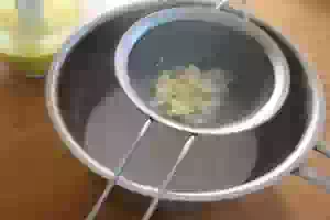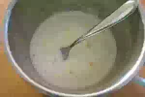 3. Добавьте в процеженное молоко взбитые желтки. При этом быстро и интенсивно смешивайте их с молоком в течение 10 минут. После чего полученную смесь процедите через сито.