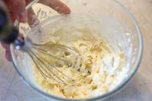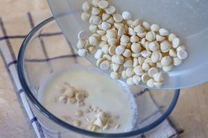 6. Спустя 8 часов достать ганаш из белого шоколада из холодильника, дать немного согреться и пробить миксером.