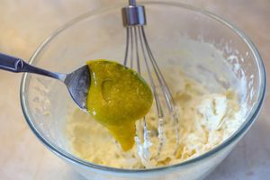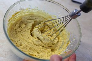 8. Курд и шоколадный ганаш должны быть одной температуры. Добавлять манговый курд к шоколадному крему по 1-2 ст.л. и взбивать миксером.