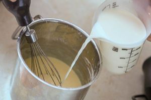 3. Влить в яичную смесь молоко