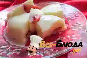 6. Достаем десерт из холодильника. Для того чтобы желе легко отстало от формы, опускаем дно в горячую воду и держим буквально 10 секунд. После чего накрываем форму с десертом тарелкой и резко переворачиваем. Молочный десерт удачно уместился на тарелке.