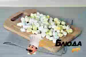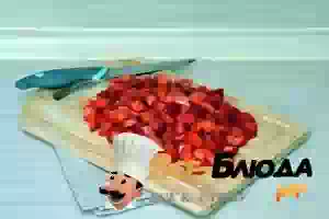 2. Клубнику помыть, просушить. Также нарезать небольшими кусочками.