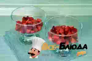 4. Затем формируем десерт. На дно креманок выложить ровным слоем клубнику.