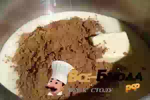 1. В сотейнике или в кастрюле смешиваем сгущённое молоко, какао порошок и сливочное масло. Ставим на небольшой огонь. Непрерывно помешиваем, доводим массу до кипения. Примерно по времени уйдёт 12-15 минут.