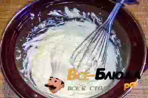 1. Сначала приготовим тесто для коржей, из которых соберем потом торт. Взобьём мягкое сливочное масло с сахаром. Продолжая взбивать, по одному добавлять желтки. Затем введём молоко и просеянную с разрыхлителем муку.
