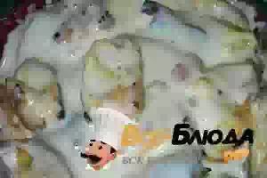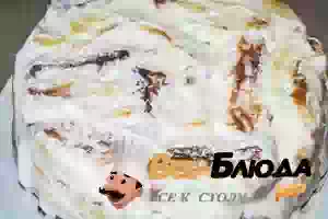 5. Для крема взбить сметану с сахаром. В полученную смесь обмакивать пальчики из заварного теста и выкладывать их горкой на блюдо. Можно использовать подходящую форму. Закрыть форму пленкой, так, чтобы края пленки остались свободными, выложить в неё все «пальчики» слоями и закрыть пленкой. Поставить торт на пару часов в холодильник. За это время тесто пропитается сметанным кремом, и отдельные «пальчики» скрепятся между собой.