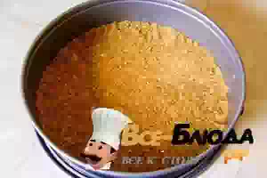 4. Выложить массу в форму поверх печенья, накрыть пищевым целлофаном и поставить в холодильник на несколько часов.