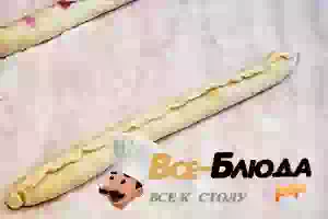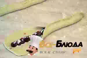 3. и защипать края, чтобы получилась колбаска. Проделать то же самое с остальным тестом и вишней.