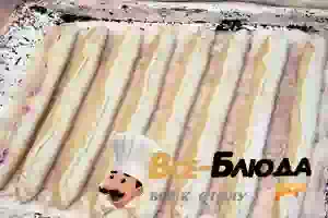 4. Уложить трубочки с вишней на противень, покрытый пекарской бумагой.