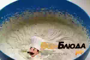 6. Тем временем взбить крем. Если сметана не очень жирная, то крем не взобьется, а будет жидким. Маложирную сметану надо предварительно отвесить, чтобы ушла лишняя вода.