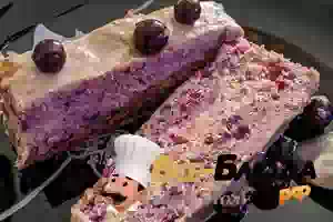 6. Накрываем вторым коржом и обмазываем торт кремом со всех сторон. Украшаем ягодами и убираем в холодильник на несколько часов, а лучше на ночь место, чтобы коржи хорошо пропитались. Торт из черной смородины со сметанно-банановым кремом готов.