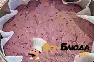 2. Застилаем бумагой жаропрочную форму диаметром 23 см, выливаем тесто и выпекаем около часа при 180.